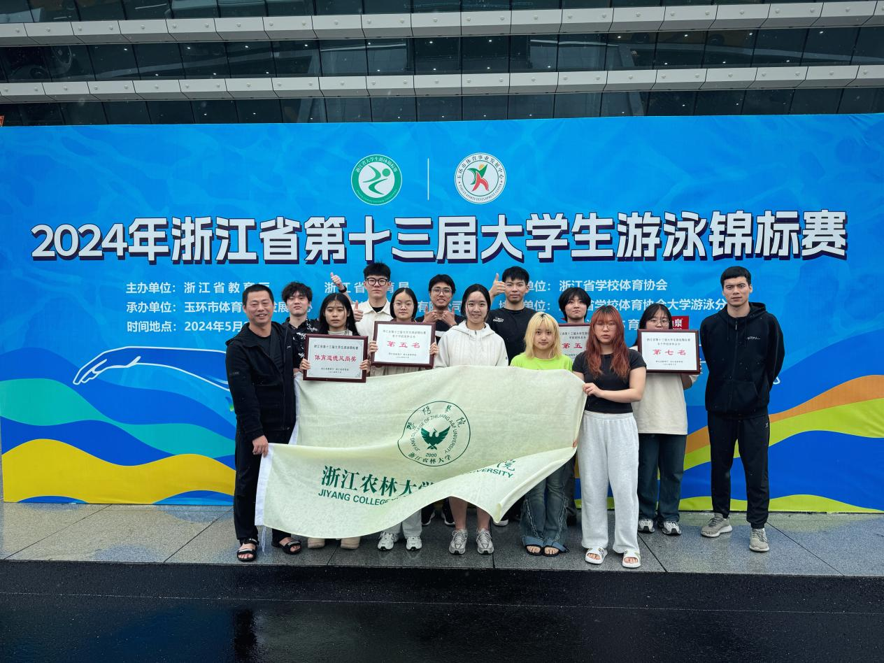 5月29日至6月2日,2024年浙江省第十三届大学生游泳锦标赛在玉环奥体中心举行。学院游泳队的11名运动员代表出战此次比赛。