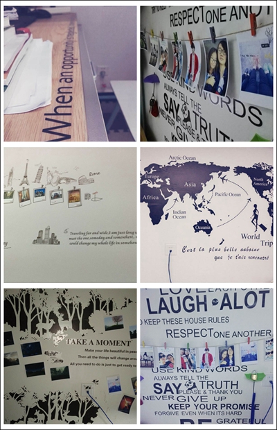 他们用华实的语言来表达自己,他们用俊秀的文字来装扮寝室,他们用一颗平常心去点亮夜晚的黑。学霸主题寝室,他们用充满活力的文字配上优美的剪贴画,在枯燥的世界地图上配点文字的佐料,使寝室充满了文化的气息。爱在寝室,爱在文字。