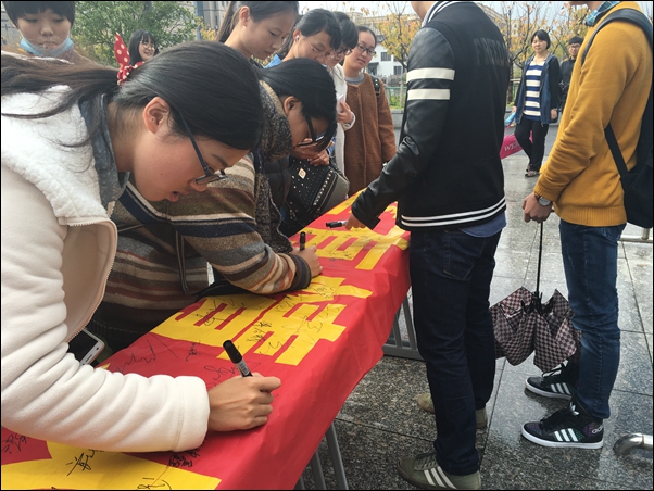活动前期,经济管理系团学组织利用微信、微博等平台发布倡议书,鼓励同学们远离违章电器,强调安全文明。11月24日中午,在食堂门口举行了主题签名活动,宣传安全知识,众多学生参与了本次活动,并许下安全承诺。