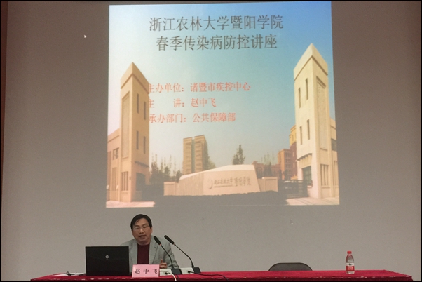为深入贯彻落实《浙江省教育厅办公室 浙江省卫生计生委办公室关于做好2017年春季传染病防控工作的通知》精神,3月10日下午,学院特邀请诸暨市疾控中心防疫科科长赵中飞为我院师生开展春季传染病的防控讲座。