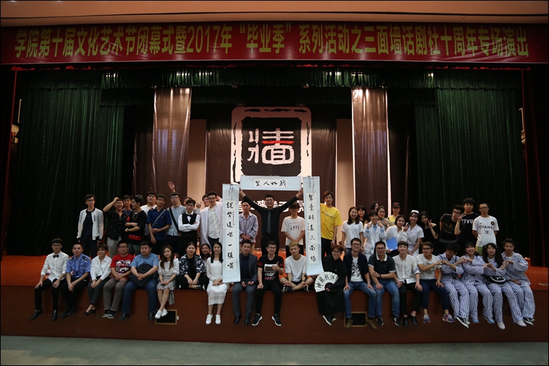 6月16日晚,学院第十届文化艺术节闭幕式暨2017年“毕业季”系列活动之三面墙话剧社十周年专场演出在活动中心影剧院举行。学工部、团委负责人,系党总支书记,辅导员以及千余名师生共同观看了演出。院学工部、团委负责人致闭幕辞,对本届学生节开展的活动进行概括总结,并对广大青年学子提出殷切的期望。
